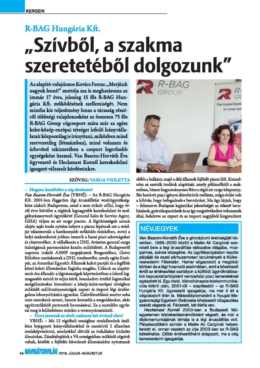 Interview at R-BAG HQ with Éva Van Baaren-Horváth and Kornél Heckenast in Navigator